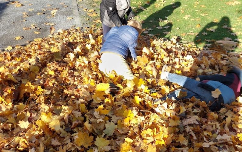 Sonnenschein und ein goldiger Herbst. Ein Blätterbad ist dann einfach unwiderstehlich für unsere Kleinen. Austoben nach Herzenslust …